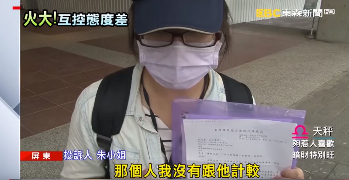 戶政事務所的監視器畫面可以看到朱小姐和櫃台的承辦人員在爭吵,吵到其他洽公的民眾也忍不住回頭看她們,朱小姐表示,因為土地分割問題,她拿著書記官給的資料到戶政事務所,要查其他持分人的資料,承辦人員卻大聲地唸出她的個資,她請對方小聲點,卻遭到對方辱罵。