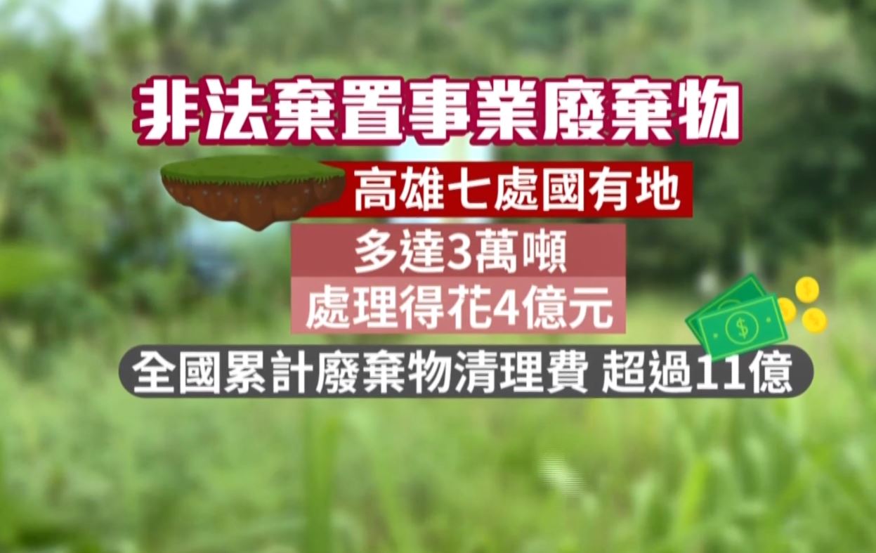 我們身邊的國有地看起來平凡無奇,並沒有什麼垃圾,事實上,土地的重金屬、戴奧辛通通都已經超標。垃圾清完了,毒卻永遠留下,光是高雄就有7處國有地遭非法棄置事業廢棄物,一共多達3萬噸,處理起來就要4億元,全國累計非法廢棄物清理費更超過11億元,通通都要全民買單,事業廢棄物惡意亂倒的清況幾乎已經失控。