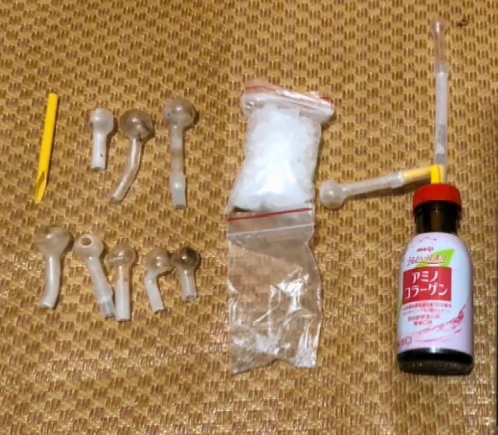 幾十包毒咖啡包被分裝在罐子和抽屜裡,另外一邊還有安非他命跟吸食器,除了毒品外,警方還查扣一把改造手槍和子彈,販賣毒品的不法所得,也全被掃了出來。
