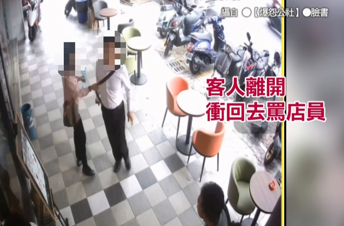 男子火氣很大,站在店門口飆粗話,旁邊的女生要拉他離開,男子邊走邊回頭,嘴裡還不斷碎念,沒多久有人追上前,還帶著警察一起出現。原來攔住客人報警的就是這間餐廳的丁姓店長,他PO網說被客人飆髒話侮辱,才會不滿追出來報警,怎麼會和客人起口角,店長說就是結帳方式引起的。