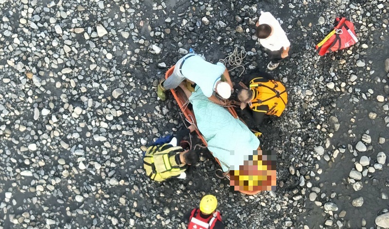 消防局說,水里分隊吊臂車及義消也前往支援,判斷救援路線後,人員穿著全套激流救生裝備,攜帶長背板徒步溯溪接觸患者,評估生命徵象穩定、意識清醒,將患者固定在長背板並抬到橋下,利用吊臂車下放藍式擔架,交由救護人員評估給氧處置並送醫。