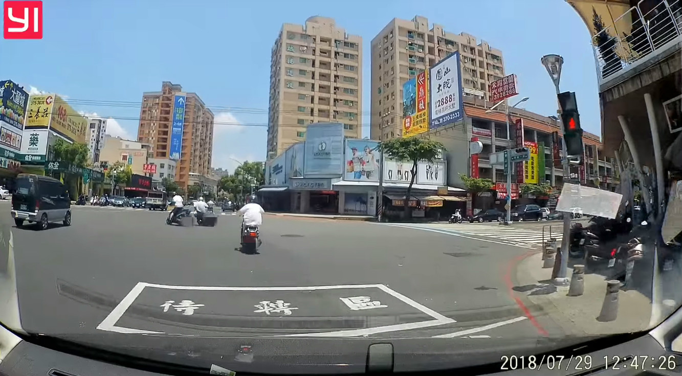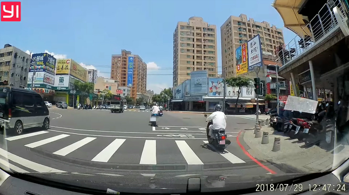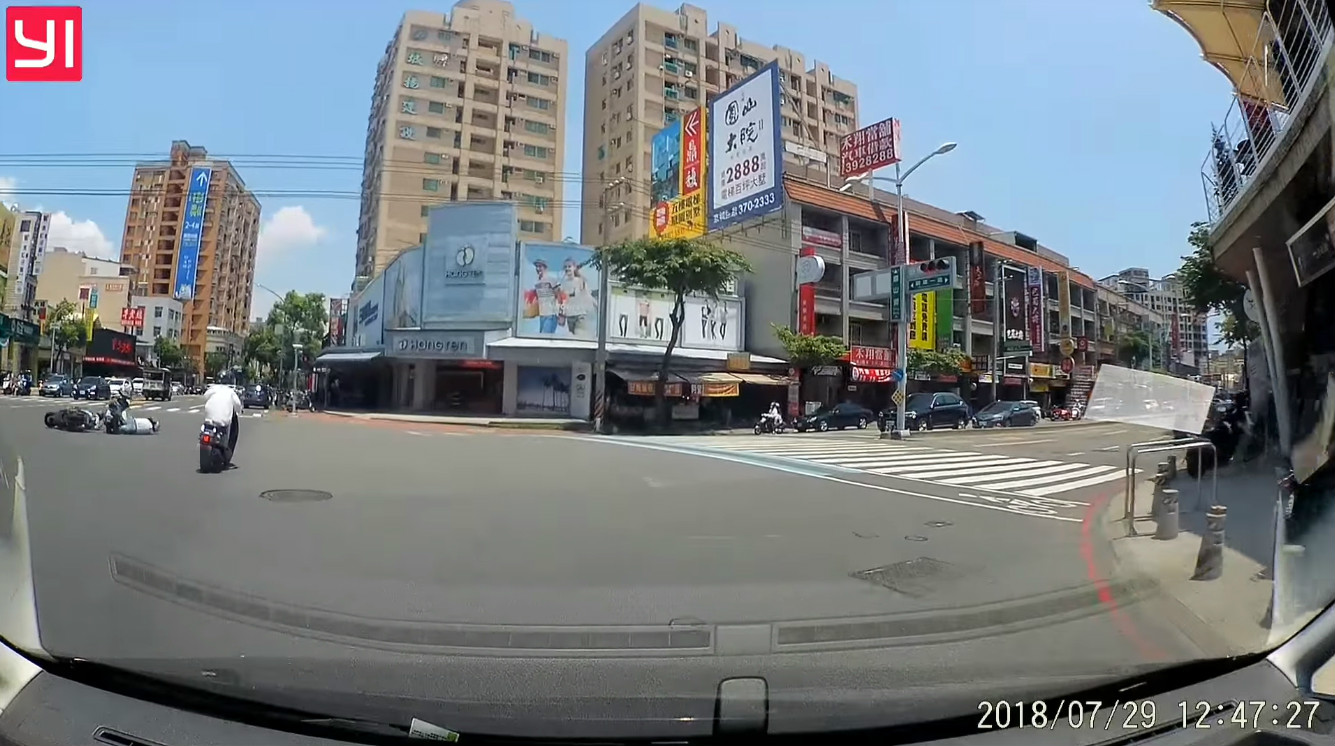 有網友目擊騎士危險的行為,並將行車紀錄器上傳至「爆料公社」臉書社團,畫面中騎士騎著藍色機車、頭戴黑色安全帽,在停等紅燈時頻頻往左後方張望,當號誌燈從紅燈變成綠燈時,男騎士還一度停在原地,意識到綠燈後才緩慢的起步,不過,在機車行進期間他仍回頭看後方,完全沒注意與前方機車距離太近,下秒就直接衝撞上去,導致雙方都摔車倒地。