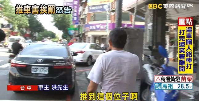 事發在4月8日,原本洪先生將貨車停在台中市大墩路一處停車格上,結果當天下午一名男子竟然徒手將他的車推走。