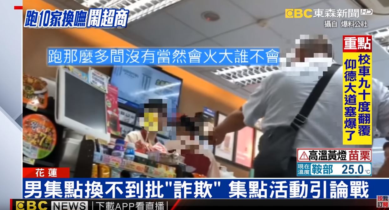 集點商品,店員表示已經換完,要他去別間店試試,但顧客不滿,飆罵「跑了十家都沒有」,揚言自己要在店裡賴著不走,逼迫店員給予其他商品。其他客人拍下過程後po社團引發討論,消保官說,如果超商有表明商品是