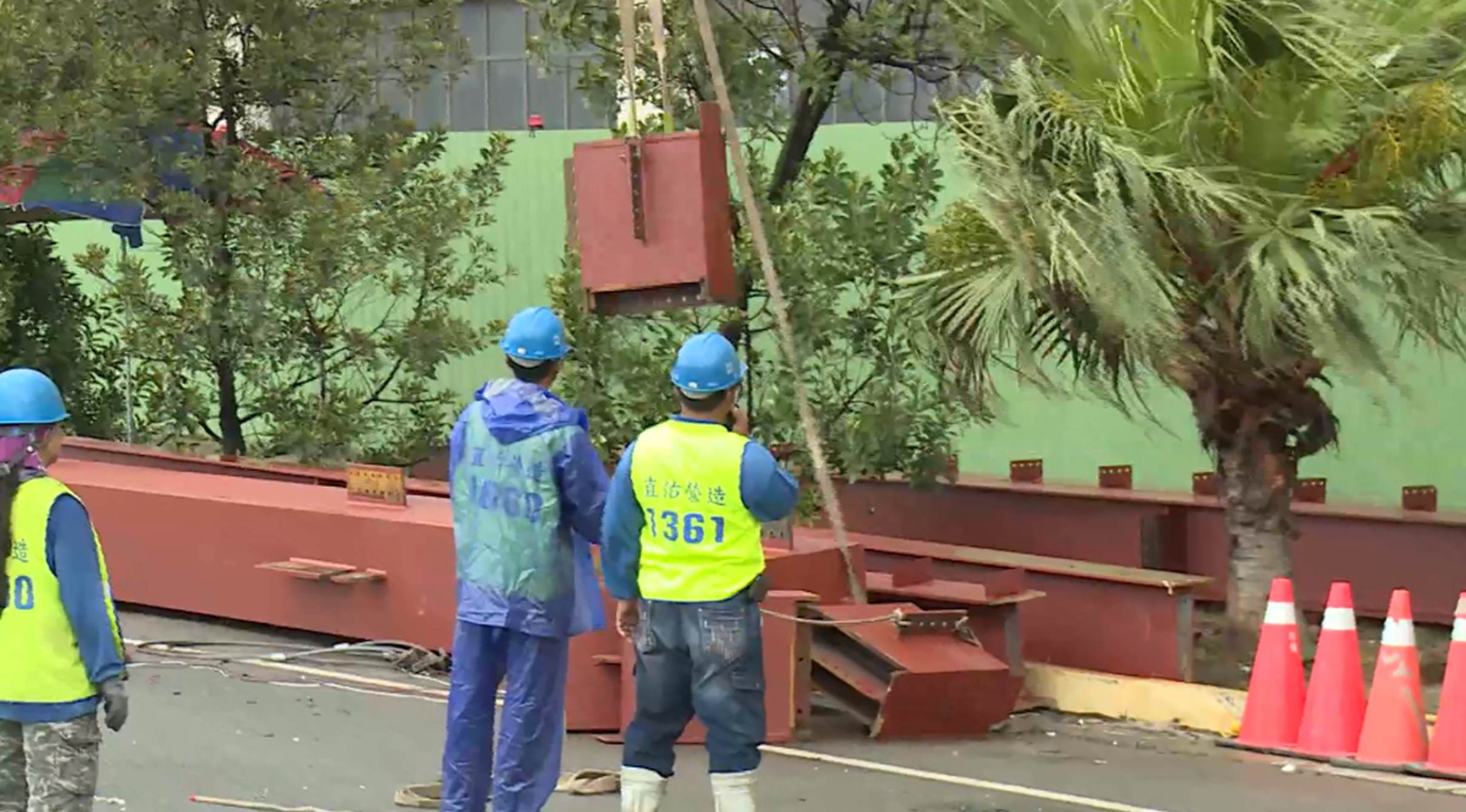 只見吊車失去平衡,大吊臂往工地方向砸下去,車體還差點翻覆,所幸被一旁鐵皮圍牆支撐,才沒釀成更嚴重意外,而吊臂倒下後,一旁的工人全被嚇壞,急忙躲避。
