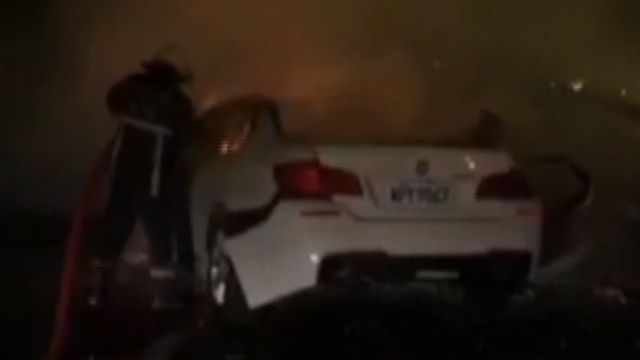,小客車爆炸起火,消防隊火速趕到撲滅火勢,發現車內2人來不及逃生,已經燒成焦屍,身分有待釐清。