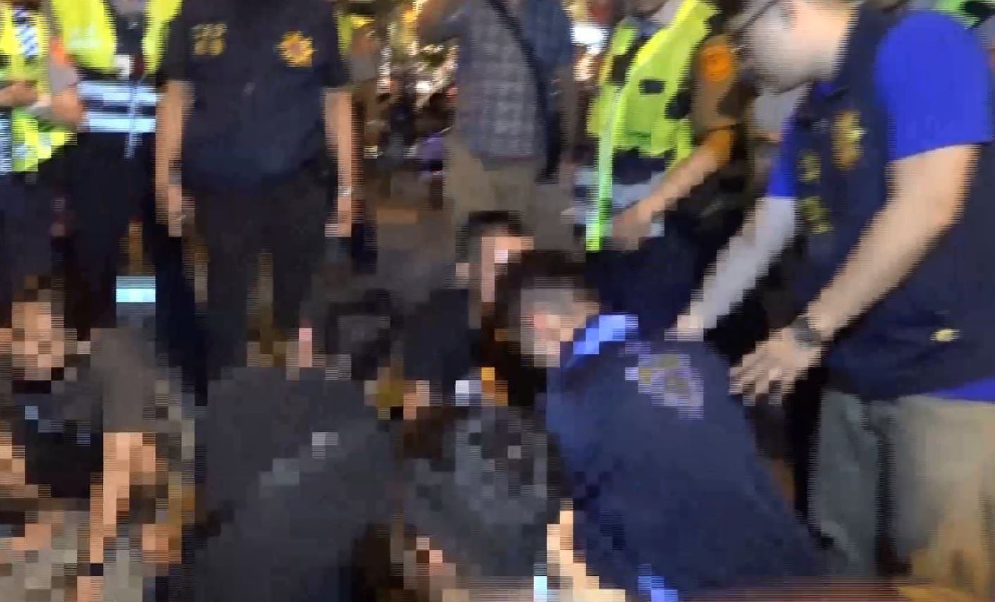 KTV門口一群人聚成一團大聲嗆聲,還作勢要打架。其中有一名女子受不了,放聲尖叫,眼看場面一發不可收拾,警方出動快打部隊。就怕衝突延續,警方趕緊要這些人都蹲下,但他們氣憤地說自己是被打的,為什麼還要被警方質問?