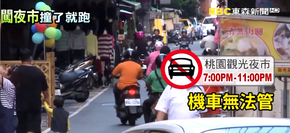 桃園著名的觀光夜市,昨天晚上有個媽媽帶著小孩,走在滿滿人潮的街上,男童卻被機車撞個正著,當場跌倒在地,肇事的機車,還是三貼共乘,撞到人之後,雖然停了下來,卻沒有下車察看,這仍舊算肇事逃逸,因此警方也循線調閱監視器,要找到這名騎士。