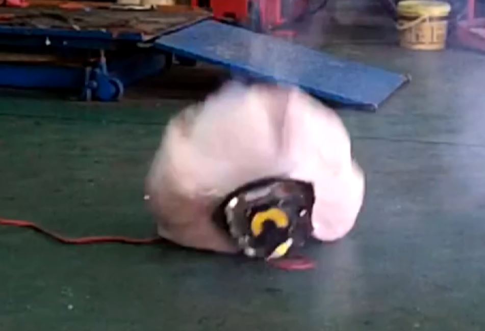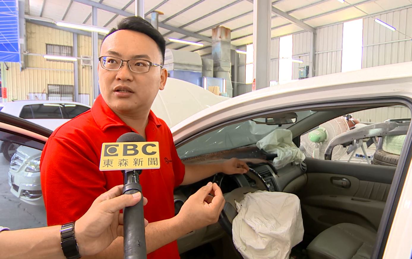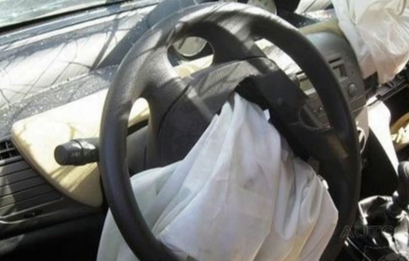 國外車測撞擊瞬間,安全氣囊爆開,但保護駕駛的同時,卻也可能造成傷害。車廠業者林毅勳(2018/06):「裡面的零件可能有鏽蝕的狀況,導致在噴發出來的時候,鏽蝕的碎片整個貫穿氣囊打到駕駛。」