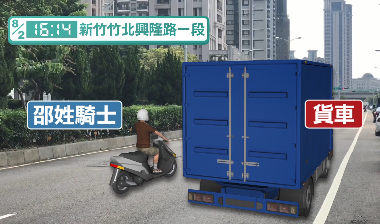 這起車禍就發生在2號下午4點多,肇事貨車行經新竹興隆路一段,疑似要往左切入內線車道,卻沒有注意後方,導致直行的邵姓騎士閃避不及撞了上去,整個人彈飛到中間分隔島,緊急送醫搶救後,雖然救回一命卻陷入昏迷,突如其來的意外,也讓騎士家中頓失經濟支柱。
