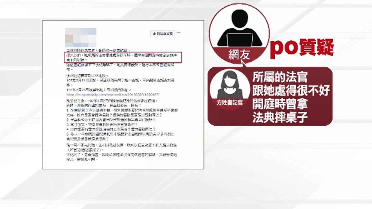 女書記官選擇在家輕生,外傳她可能就是因為在士林地院工作的時候,不堪壓力負荷。有網友在社團發文質疑,過世的方姓書記官和所屬的法官處得很不好,開庭時曾拿法典摔桌子,工作上遇到困難,跟法官相處遭受不當壓力,暗示職場壓力大,不過沒辦法證實是否和陳梅欽有直接關聯。