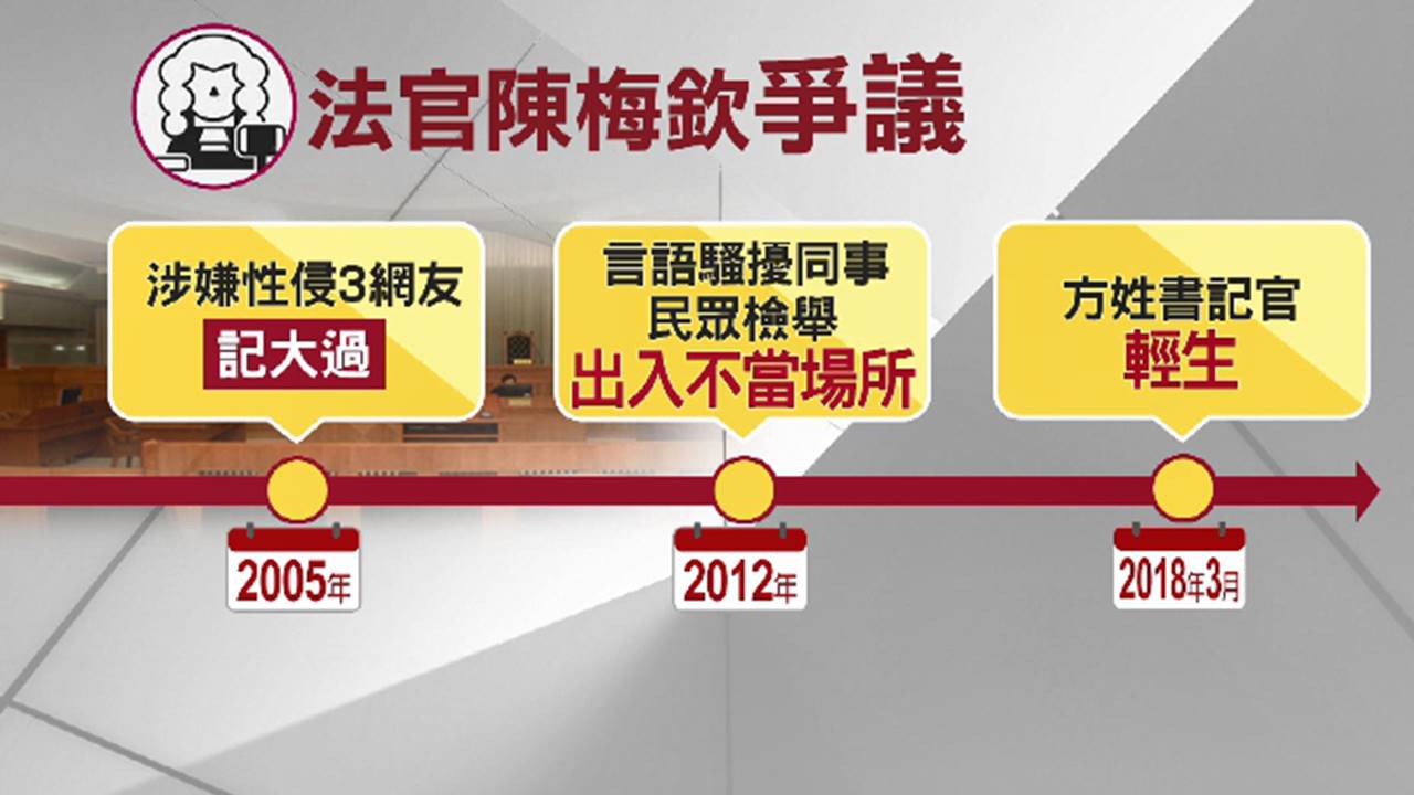 性侵網友,今年還有一名書記官輕生,也被質疑是和陳梅欽處不好,工作壓力太大,種種指控,目前都查無具體事證,陳梅欽也沒有對外回應。