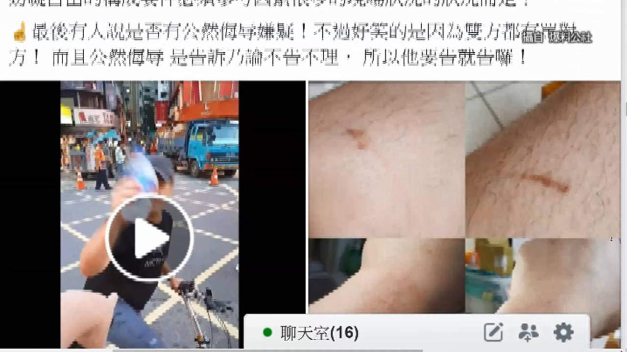 之後錄影民眾將影片po網,敘述事發過程,7號晚間6點半,在新北市板橋館前東路的超商前,一名店員撞倒男子腳踏車,遭對方大罵,可是明明已經道歉,他路過看不下去,出面制止,雙方爆發衝突。Po網民眾指控過程中遭腳踏車龍頭擦撞,手肘和腳都有擦傷。腳踏車主:「你拍啊!你拍啊!(你說你是警察嘛,你剛剛跟我講的喔)怎麼樣,(我現在找後埔所的過來),你叫啊。」