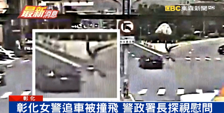 女警,這個月7日騎乘警用機車巡邏,為了追逐違規機車,遭對向車道轎車撞飛受傷,上午