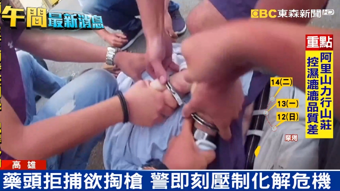 拿槍,還好警方立即將他壓制在地,逮捕上銬。