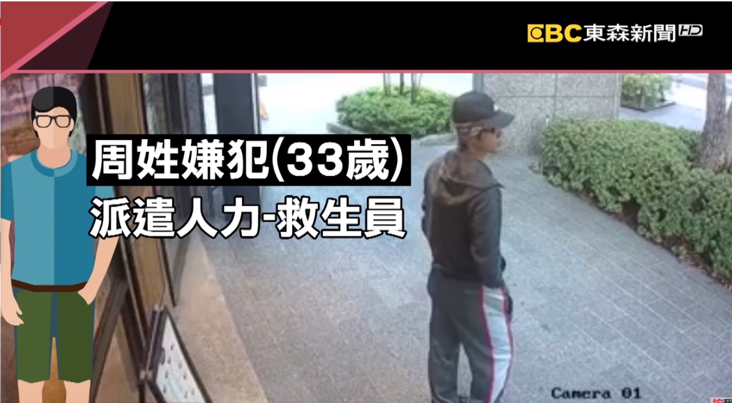擄童案犯案者,竟然就是附近社區的救生員,當時一發生,總幹事匆忙跑出來看。附近民眾:「總幹事是有過來查看,我們都有監視器,他的意思是說,那個是委外包商的救生員。」事後釐清,33歲的周姓嫌犯沒有前科,是派遣公司派來進駐游泳池的救生員,工作約半年,但卻突然失控,犯下擄童案。