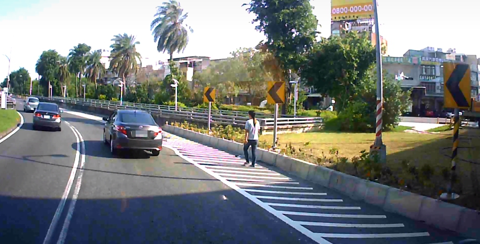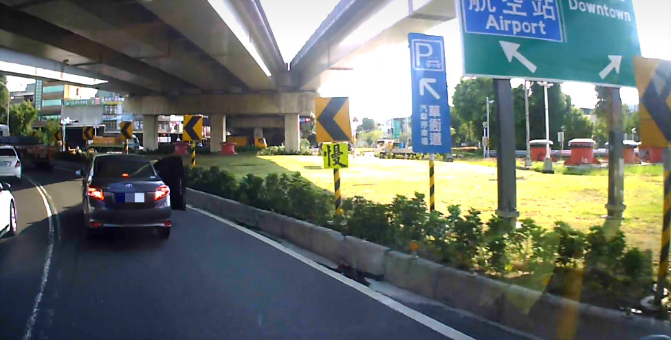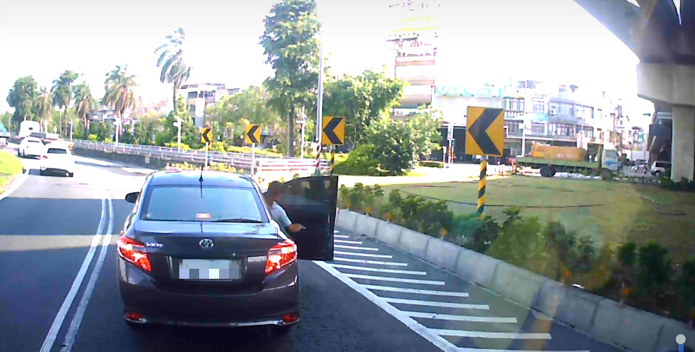 一名駕駛10日下午行經高雄路段時,不知為何突然減速,接著女乘客完全不顧車子還在行進中,直接