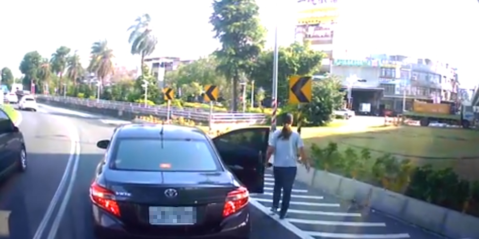 下車,行徑令人匪夷所思,事後,後車駕駛將行車紀錄器分享至「爆廢公社」,不少網友笑虧:「被