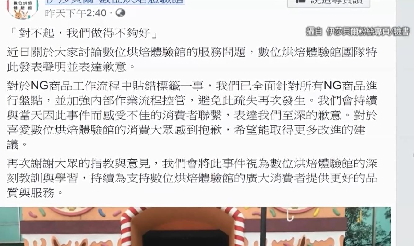 而業者對於客人的指控,只說是工讀生貼錯標籤。遭投訴餅店業者黃先生:「因為工讀生不是本科系的,他就是把製造日期打上去,他以為是打製造日期,應該是打有效期才對。」但是工讀生不是應該有受教育訓練嗎?伊莎貝爾高層又說,員工已經教了,但還是教不會。遭投訴餅店業者黃先生:「SOP照走,問題照出,這個是一定有的情況,人就是這樣子嘛。」