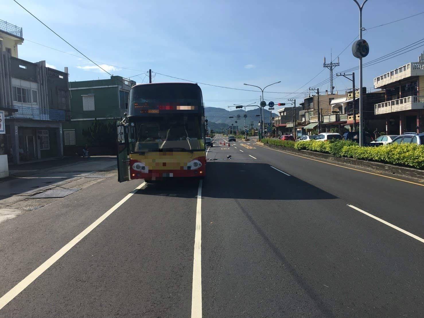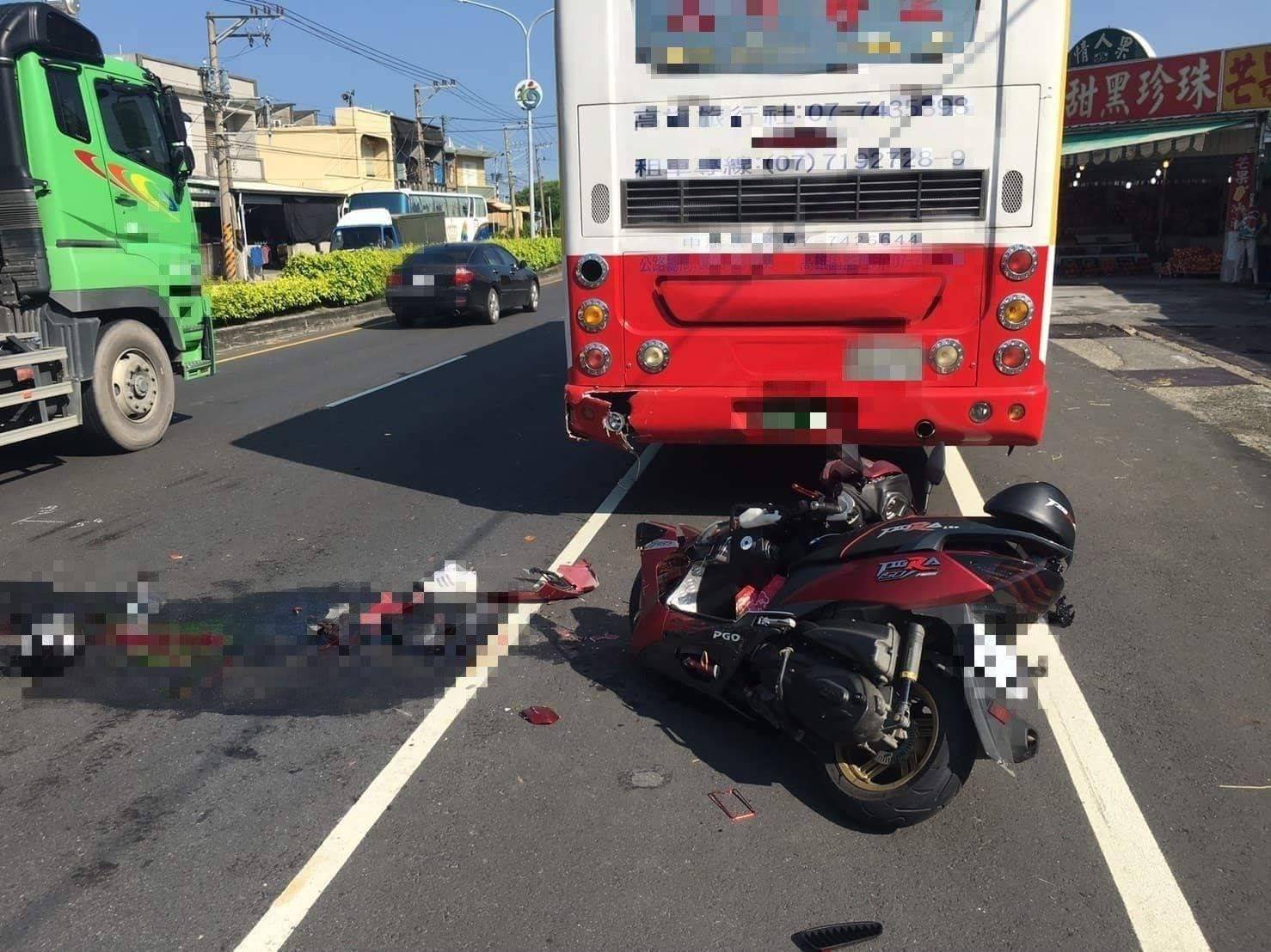 追撞前方大客車,當場摔車,送醫後仍不治身亡。