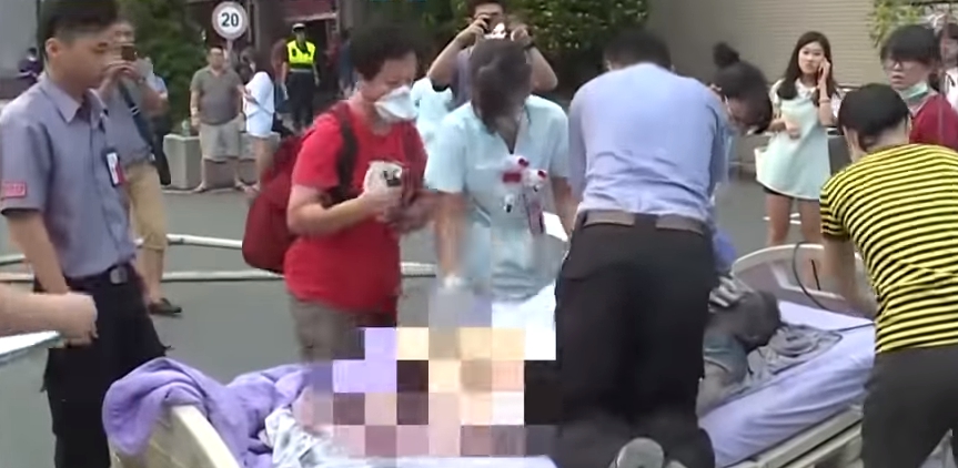 整棟樓的病患陸續被救出聚集在一樓,經過護理人員檢查後,並排在安全處等待,輪椅、病床擠滿醫院大門外面,而在醫院裡面陸續傳出有病患傷勢嚴重。