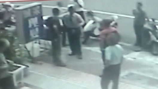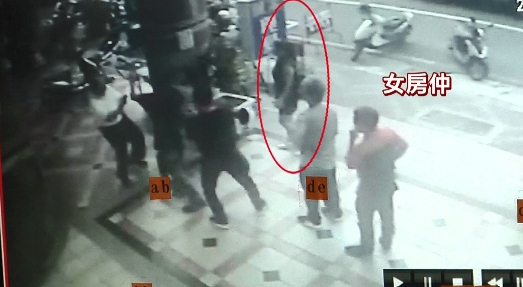總幹事穿著白色上衣,在自家大樓下騎樓遭到4名男子包圍,其中2名男子靠近他,一個用手揮拳,一個拿著安全帽,2名男子追著總幹事,總幹事往路上逃,2人繼續追了過去,其中一名男子還打到安全帽都掉了,撿起安全帽繼續毆打。被打大樓總幹事:把「我雙手抓起來,用安全帽敲打我,證據還在我這邊,安全帽都被敲破了。」幾名男子和大樓總幹事不認識,但怎麼會一到大樓就找總幹事?還奮力往他身上痛打,仔細看,整個毆打過程,還有一名女房仲站在一旁,這名女房仲有房子要出售,到這裡整理房子霸占電梯,還把垃圾放門口,住戶反應,總幹事過去勸阻,女仲介因而不滿找了4名男子,要來教訓總幹事。