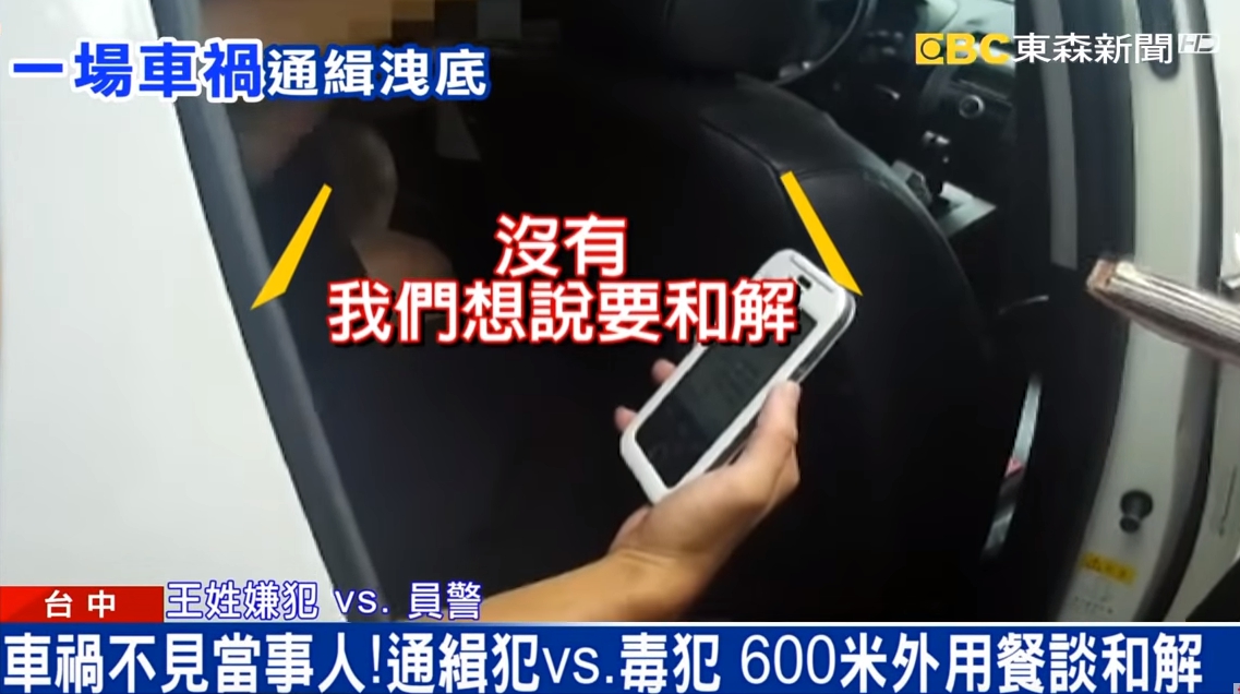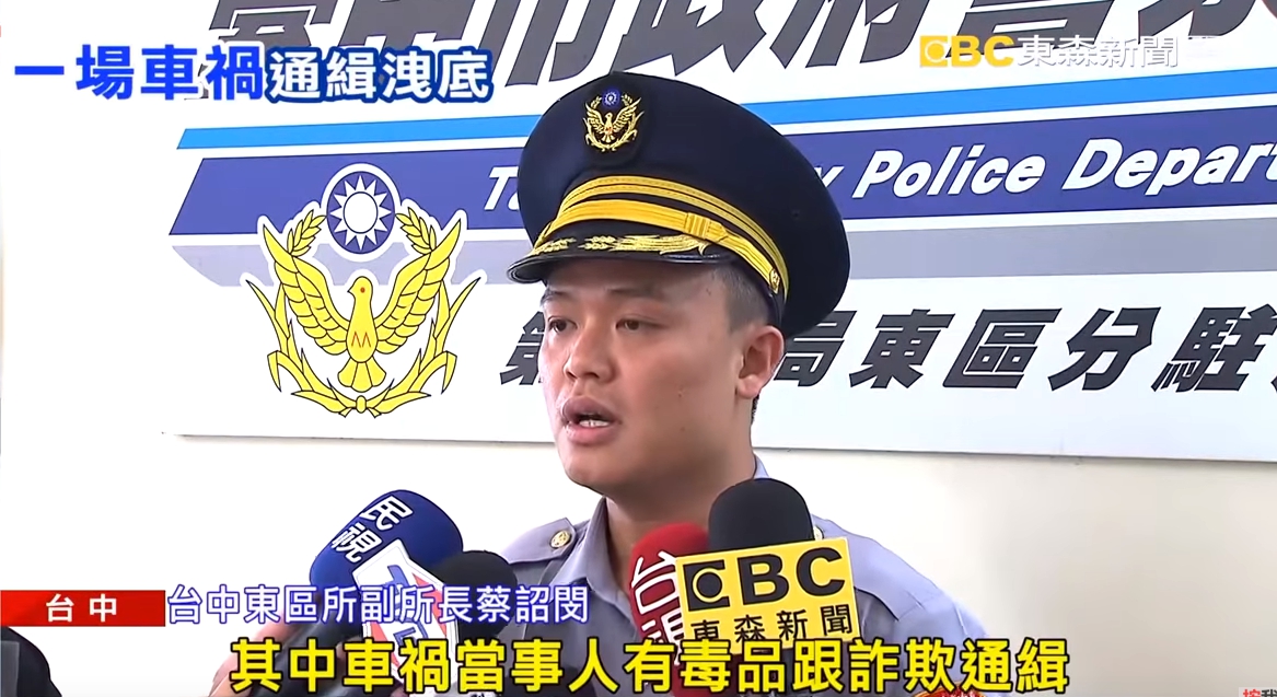 台中東區所副所長蔡詔閔:「其中車禍當事人有毒品跟詐欺通緝,怕被警方所查捕。」