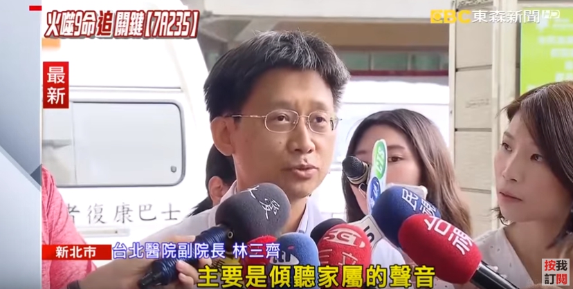 不是不搭,是不能搭,電梯上面特別貼上海報「電梯被管制,不能用」,其實就是受到大火波及,而且一連2座都被封閉,院方後來找來排水管,不斷把電梯井裡的水抽出來,但是讓台北醫院頭疼的不只這些,遇上大火的老人家,他們的家屬和院方在醫院8樓進行協調會,包括後續傷患處置以及往者後事等。