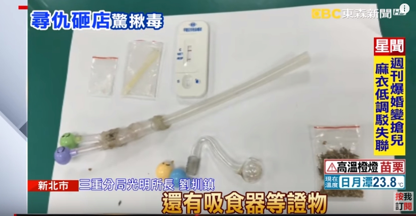三重分局光明所長劉圳鎮:「警方據報前往處理,意外在該處發現陳姓男子等3人,涉嫌持有吸食毒品,查扣安非他命還有吸食器等證物。」0.5公克安非他命以及毒品吸食器,陳姓店長坦承是葉姓和黃姓男子帶來,3人被依毒品罪嫌移送,不過為什麼會被人上門鬧事,疑似是感情糾紛。