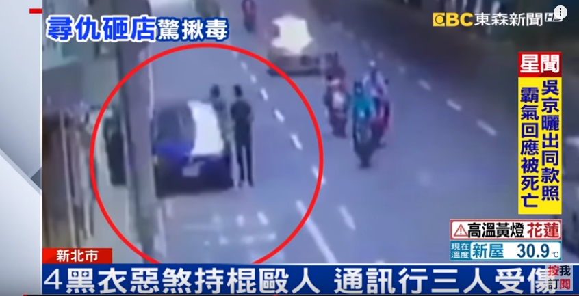 新北市三重區新北大道一段,一間手機通訊行,4名男子惡狠狠上門毆人,當時陳姓店長和2名友人正在聊天,沒想到被惡煞一陣亂打,警消獲報到場時,發現黃姓男子頭部6公分撕裂傷,另一名葉姓男子則是手臂多處挫傷,把人打的頭破血流,4名嫌犯犯案後,坐上停在公車站牌後的轎車開車逃逸,警方接獲報案到場,卻意外起獲