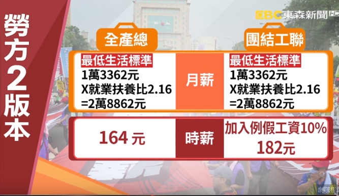 各界意見不斷,連勞方也提出2種版本,都希望月薪能調到2萬8862元,時薪方面,全產總和團結工聯就出現不同聲音,希望最高能到182元,也讓資方相當不滿。