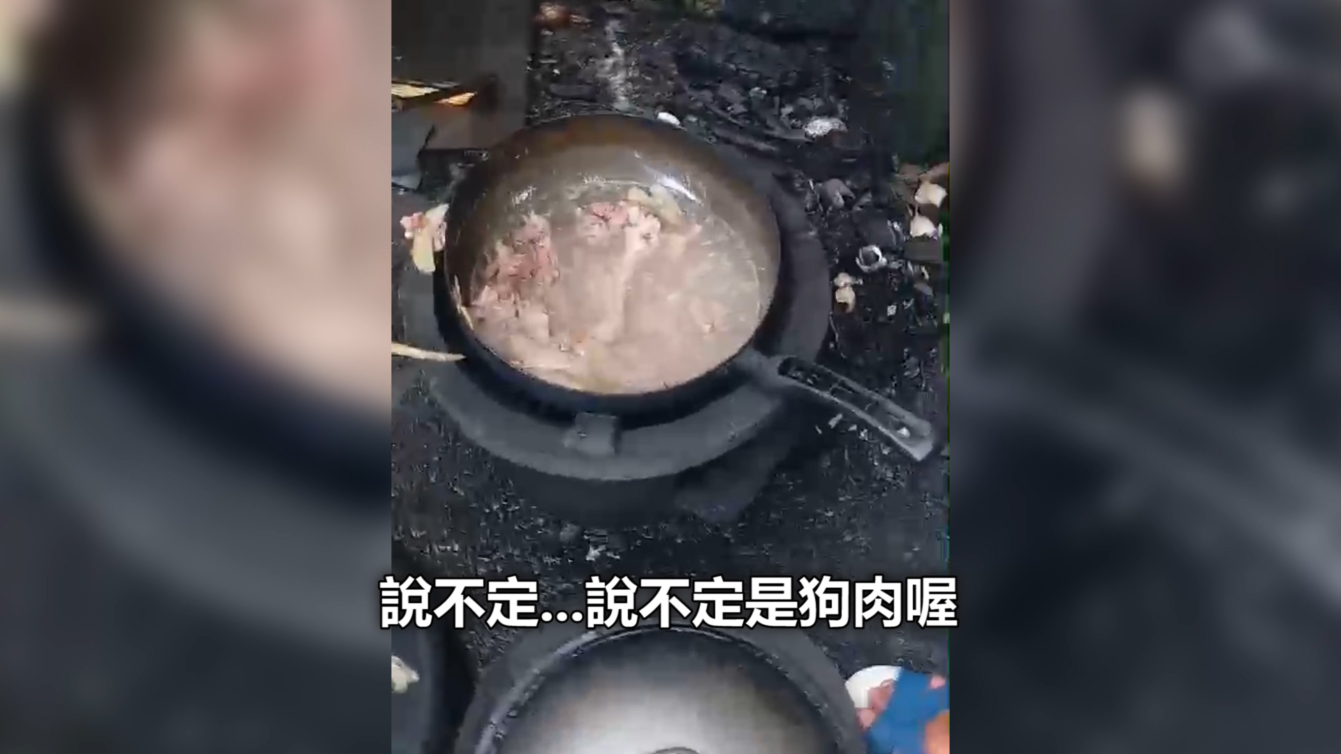 「鐵甲阿嬤」邊走邊喚著狗狗:「花花,阿嬤來囉!」但沒見到狗兒,卻發現牆邊一鍋經烹煮的肉湯,讓他們大起疑心,紛紛拾起鍋中骨頭討論,「說不定是殺狗!」、「豬骨頭沒這麼細」、「有(狗)毛!」檢查後已有八成確定,毛孩可能慘遭殺害。更讓人心痛的是,隨即在一旁雜草堆中發現狗狗「花花」的屍體,牠的後腿慘遭砍斷,明顯和剛剛鍋中骨頭符合,愛媽們心痛地說:「剛剛那鍋裡的就是牠的腳啦!」