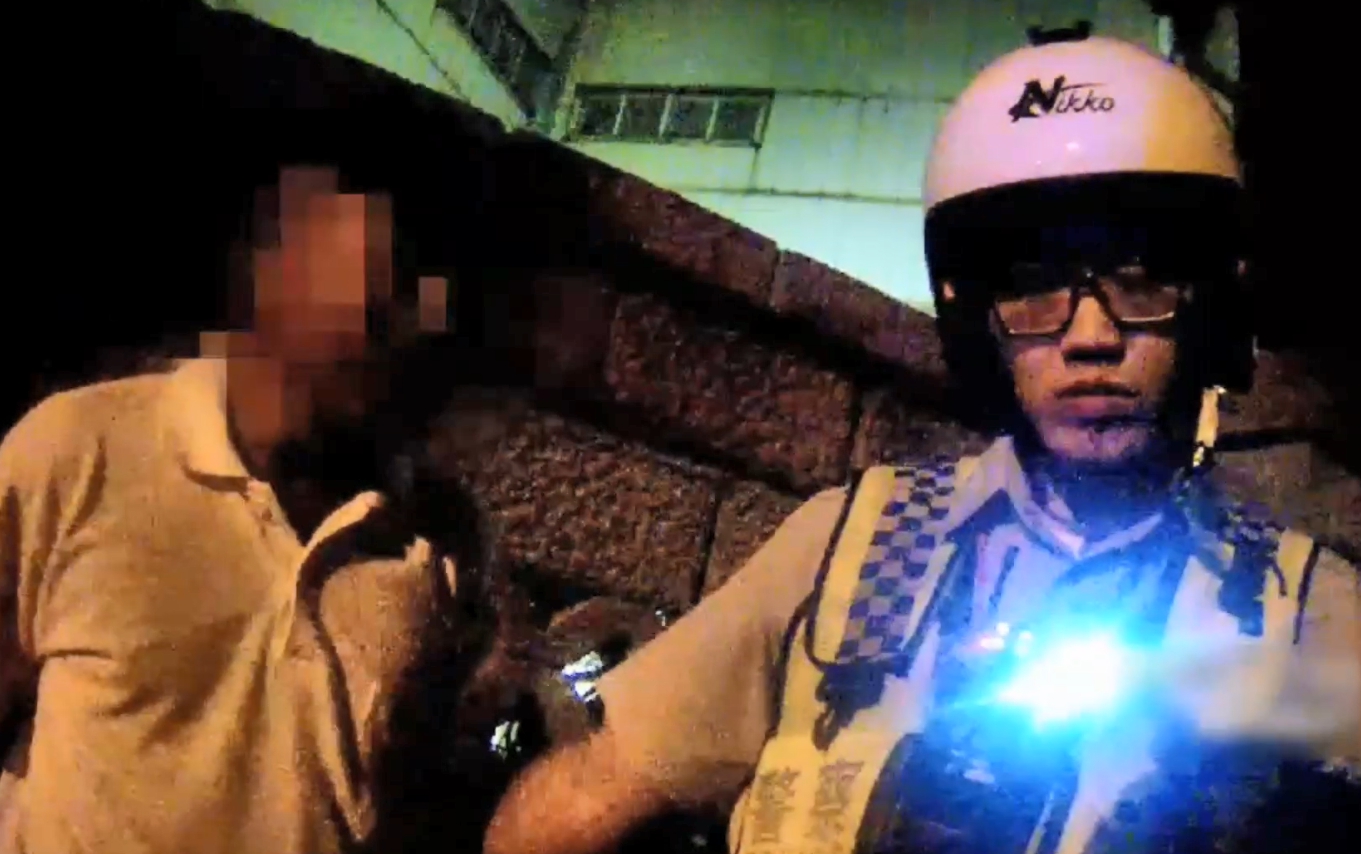 警察:「你把安全帽拿起來,不是吧…你試報誰的?」