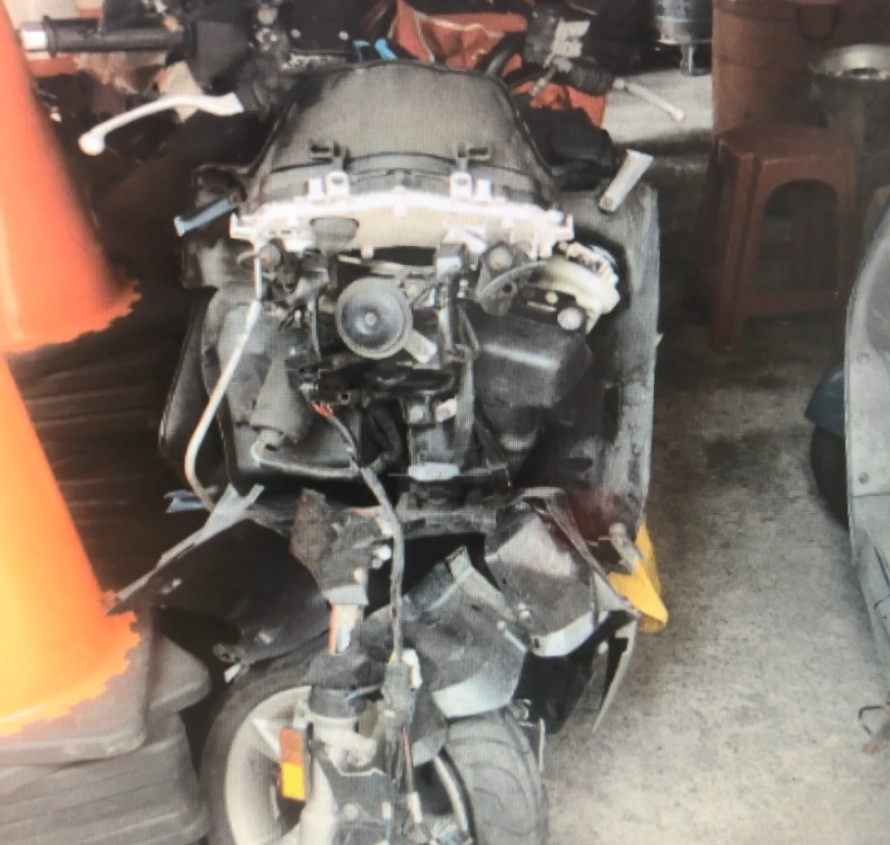 機車車頭全毀,轎車右側車門鈑金凹陷,附近居民說環河西路車流量大,車禍事故頻傳。