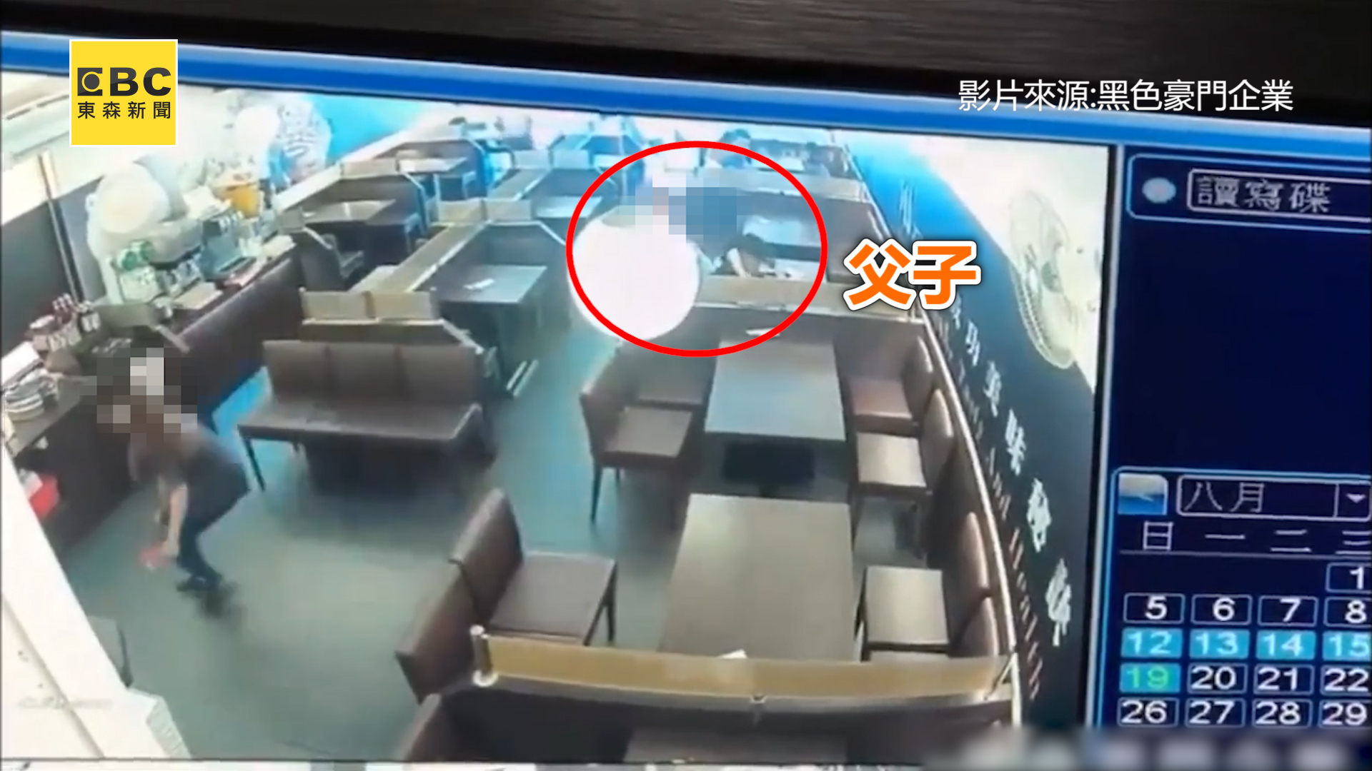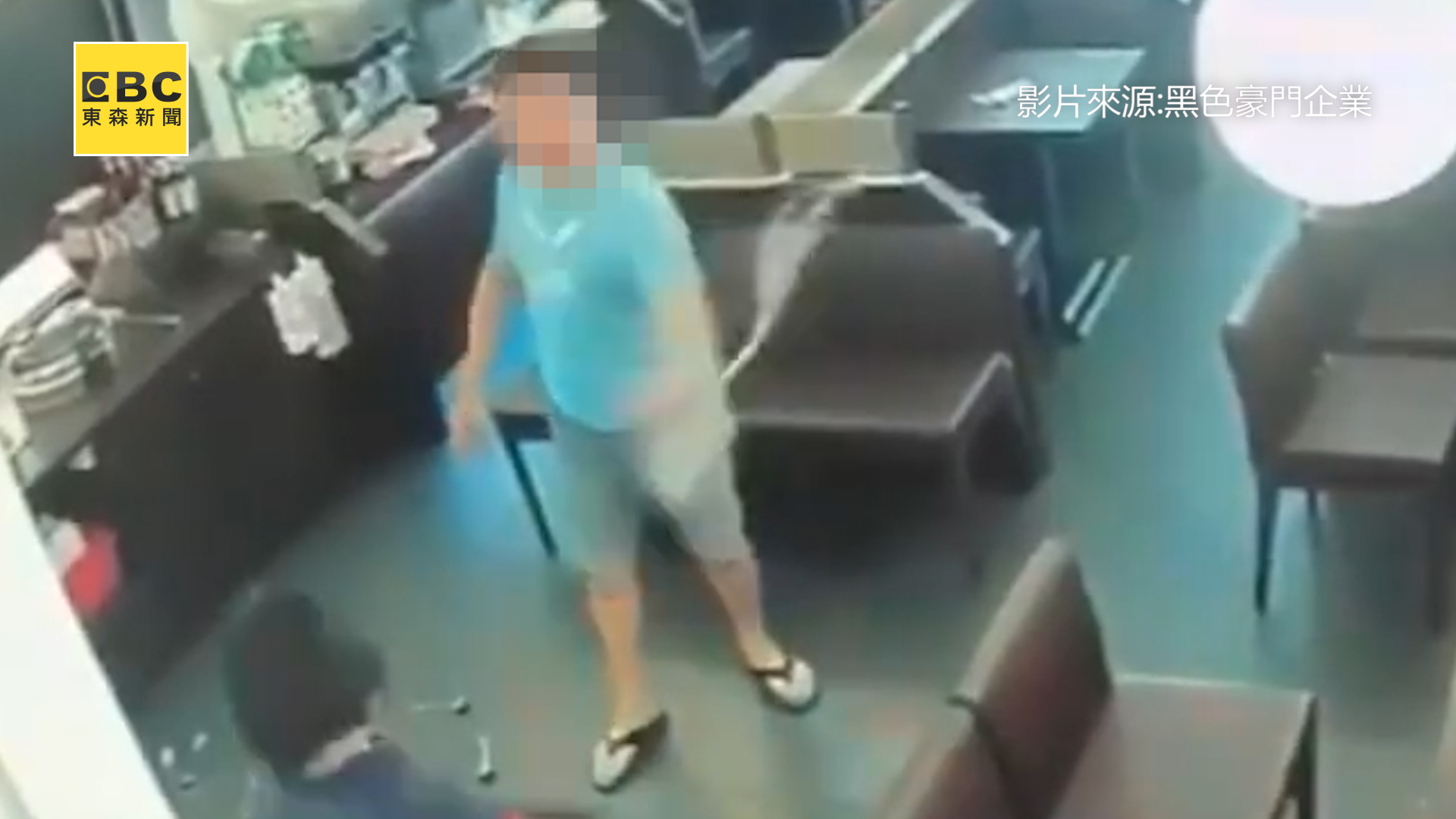 畫面中可以看到男子將桌上的排餐甩到地上,看起來相當氣憤。因為店裡工讀生送排餐掀蓋時,男子並未拿起餐巾紙遮擋,導致鐵板上的醬汁噴濺到他身上,他氣得要求店家賠償洗衣費,不接受工讀生及店長的道歉,見他們不予理會,男子還將餐具區的湯匙盆往地上扔,甚至對店員潑灑飲料,兒子則在一旁目睹一切。