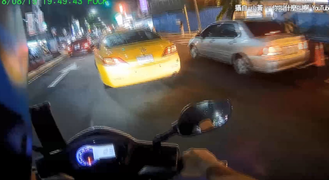 這段影片的發生時間是在昨(19)日晚上將近八點,機車騎士和小黃駕駛因為