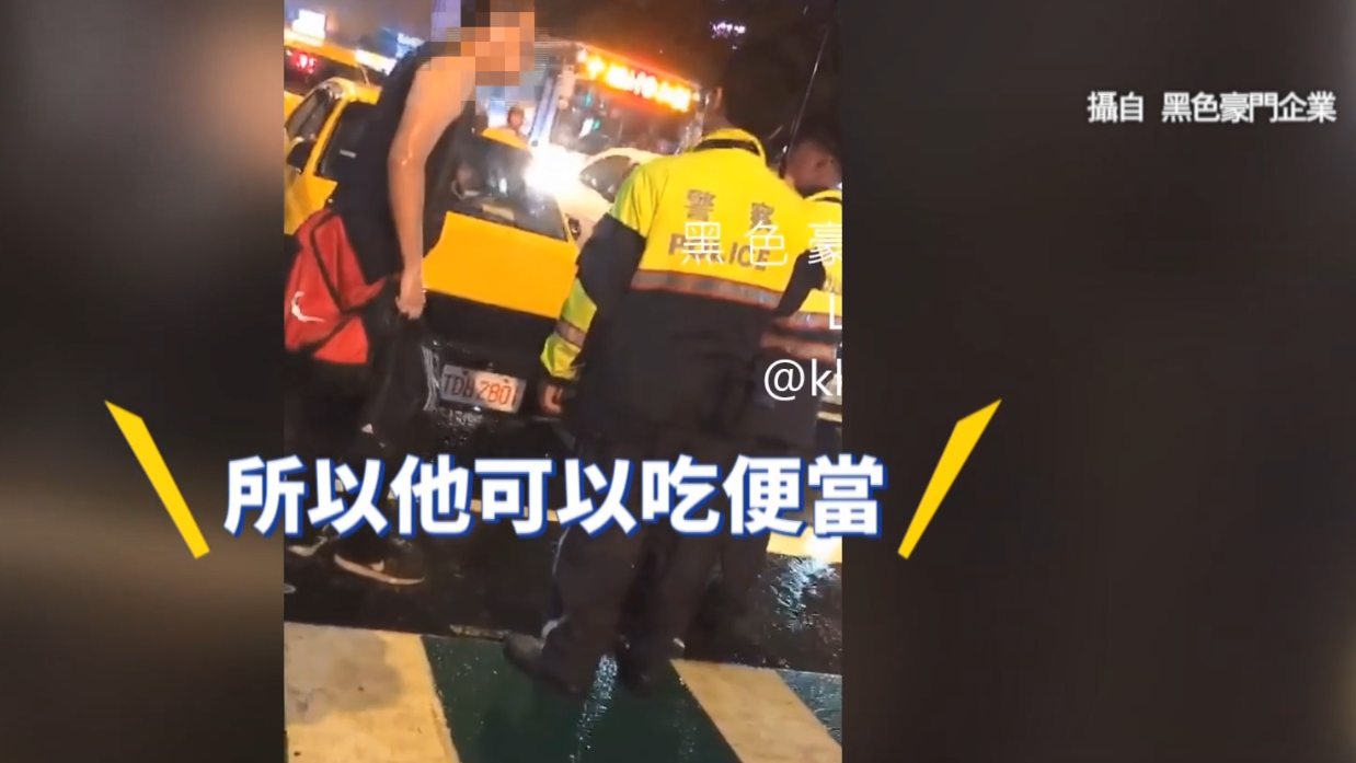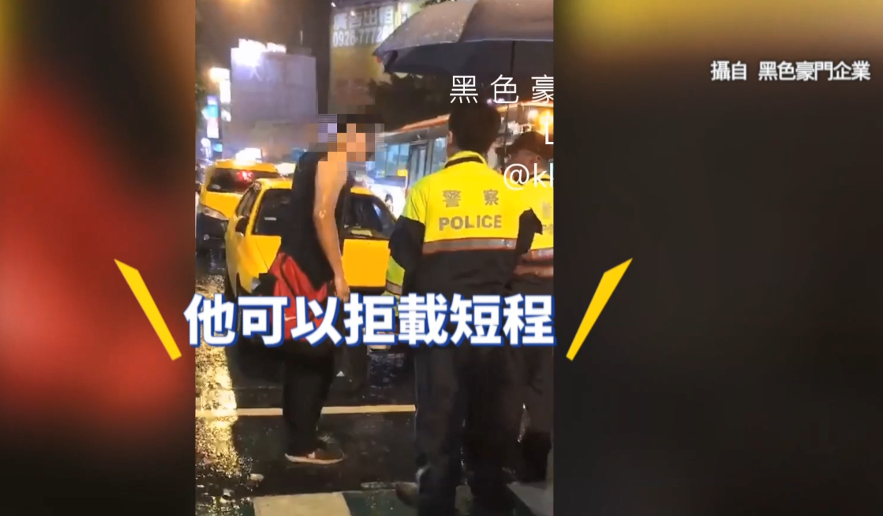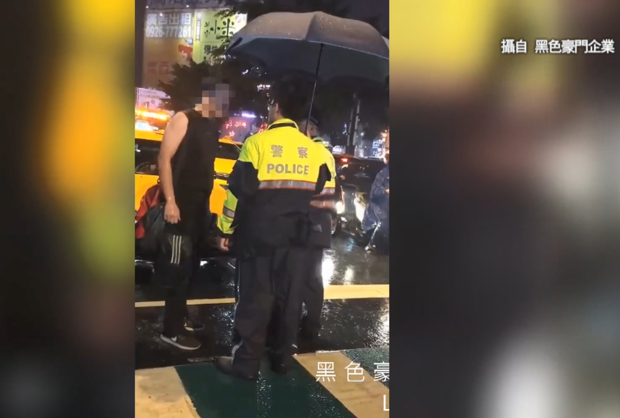 影片中可以看見,當天晚上下著大雨,只見一名身穿黑色背心的男子全身被淋濕,怒氣沖沖地站在火車站前對著警察不斷大小聲,情緒相當激動,男子向員警表示計程車司機為了吃飯而拒絕載客,並請他改搭下一部車。