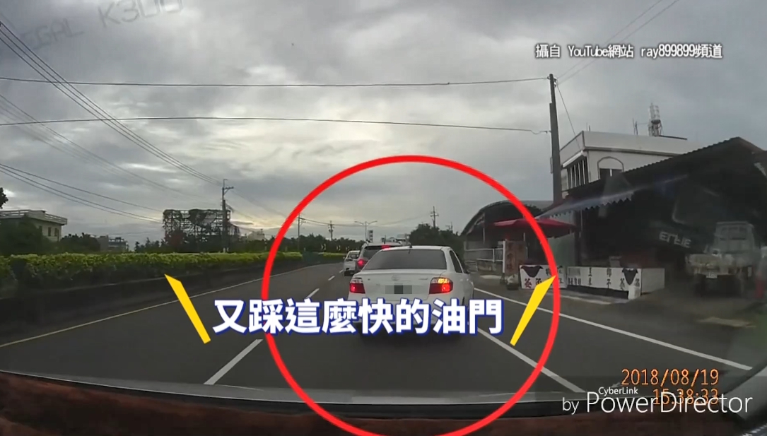 屏東台一線北上枋寮路段,沿路有不少商店販賣當地農特產品,一部轎車疑似為了買椰子水,一路從快