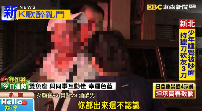 酒醉男:「我不認識他!你都不認識就對了!不認識!你都出來還不認識?好啦!好啦!」