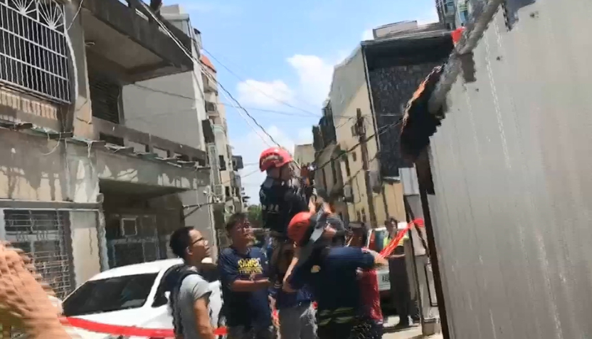 繩隊救援,成功將人救出,2名工人則是分別頭部腫脹,一位下肢腫脹,均被送往醫院救治。