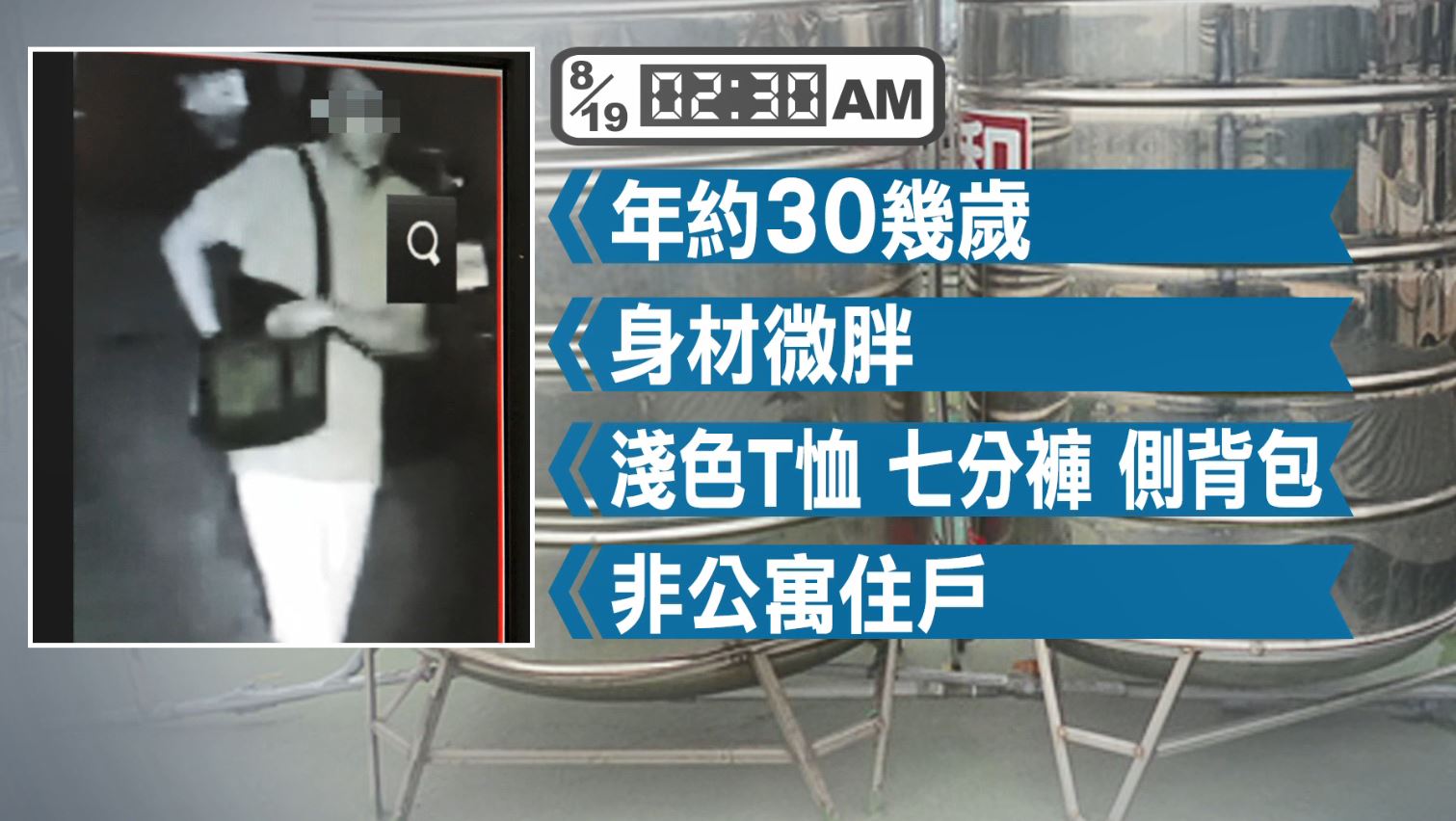 蓄水池是備用水源,供應整棟5層樓公寓,男子把蓋子打開,對著裡面乾淨的水源大口嘔吐,早起住戶看到這一幕,完全受不了。這名男子年約30歲,身材微胖,身穿淺色T恤和七分褲,還背著側背包。他不是住在裡面的人,卻在19日凌晨2點半,拿著大門口的鑰匙隨意進入,男子進入公寓後吐完就走,離開時腳步有些不穩,懷疑當時有喝酒。公寓住戶:「我們也想不透,是這兩棟的人,還是住戶拿鑰匙給他?不然他怎麼有鑰匙可以開?你看那張照片第2張,就是在開門。」