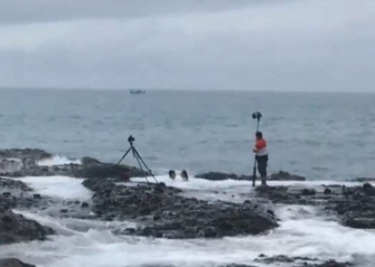 23日下午4點多,一對新人在花蓮豐濱鄉拍攝婚紗,沒想到大浪把兩人捲入海中,當時正好有位程姓導遊在附近拍照,本來是想捕捉新人拍婚紗最美的一刻,卻意外捕捉到這起意外。他將畫面PO在網路上,表示這對新人在「搏浪演出」,但所幸兩人都沒有受傷。資深導遊尼古拉:「浪花有點斜斜的,從右邊打上來,就把新人沖下海,我那時在錄影,要喊(危險),就先關閉(手機),他站的位置如果太過(靠海),就有可能被浪捲走。」