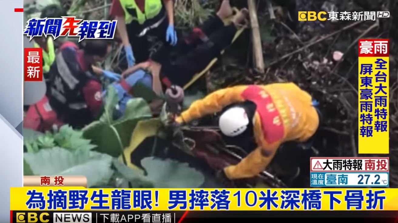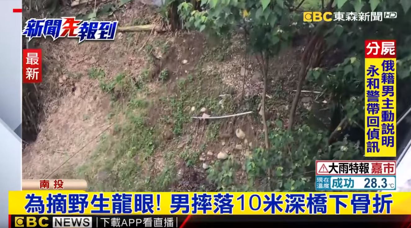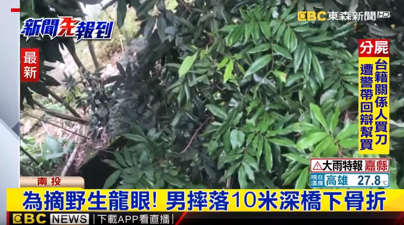 25日上午11點多,南投一名男子開車載朋友經過國姓村北山村仙人橋,看見路旁野生龍眼樹想要採果,當時他還遇到農地地主,地主覺得在這裡採實在太危險,邀請他到園內免費採果,不過男子婉拒對方邀約,沒想到地主才一走,就聽見哀號聲,嚇得趕緊報案。