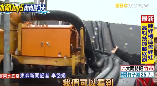 東森新聞記者李岱娟:「這個地方在過去如果有豪大雨情況容易出現積水,甚至淹水,我們可以看到大概有10部的抽水機,已經在這個地方做備戰的動作。」