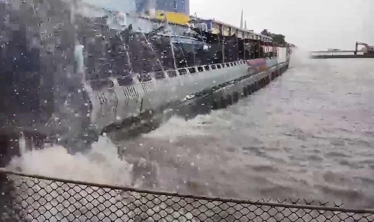 大浪強勁打進停泊港口,天候不佳,海上風浪洶湧,東港到小琉球的