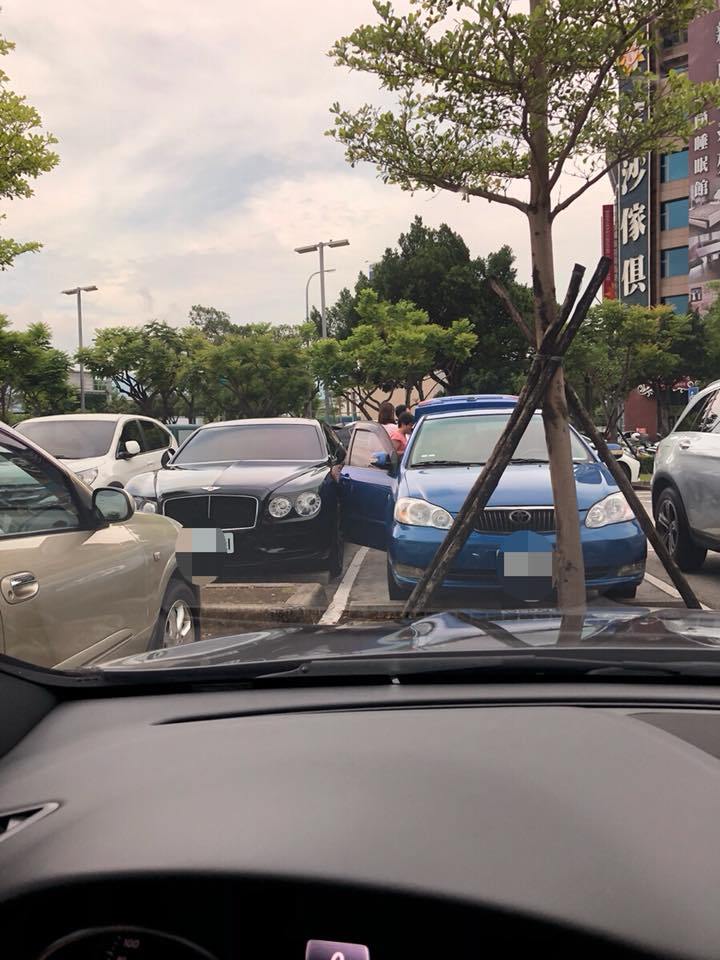 一名女網友在臉書社團「爆怨公社」貼文表示,她在內湖好市多看到一名大媽完全無視停在側旁的車輛,一開車門就直接撞上右邊的黑色賓利,並附上多張照片為證,只見該名駕駛藍色TOYOTA的大媽在開車門時,完全不顧是否有與周圍車輛保持適當距離,霸氣地將車門往旁邊一開,狠狠撞上千萬名車。