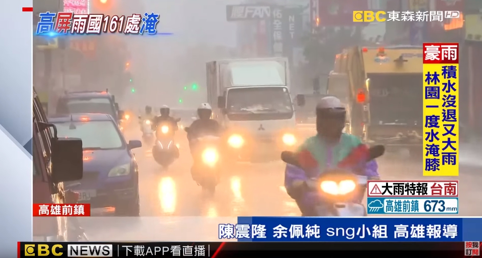 冒雨騎士:「6點多雨下很大,(雨下蠻大這邊的交通狀況呢?)全塞 ,(都沒辦法前進?)對,然後機車都要騎在汽車道。」又是大雨又是塞車,為了趕上班,高雄民眾一早得克服萬難,有的涉水,有的繞路,才有辦法到公司,辛苦只能往肚裡吞。