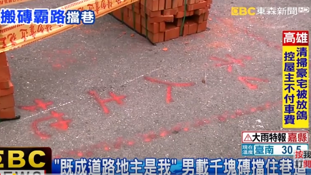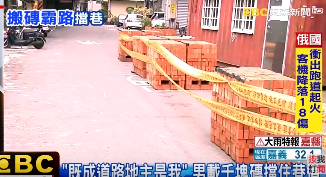 磚頭,將道路擋到連大型車都開不進去,當地居民氣得說要去舉發地主公共危險。