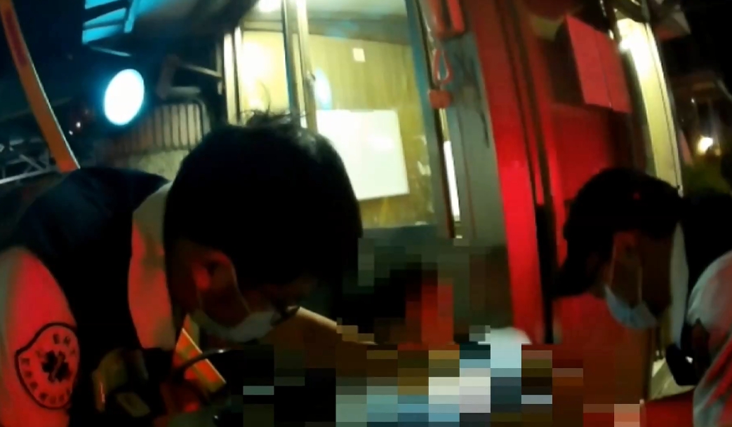 救護人員:「你先看他肚子,有啦,你是哪裡受傷,哪邊比較嚴重,肚子。」