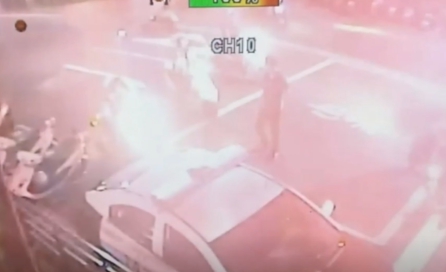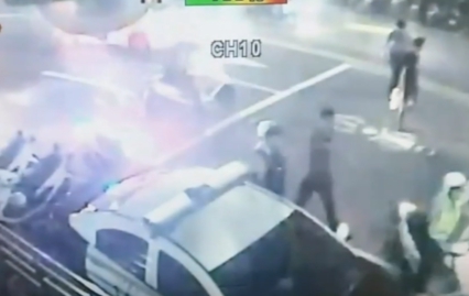 屁孩出動包圍派出所,在派出所門口不斷叫囂、鳴喇叭挑釁,還頻頻作勢要衝進派出所,立刻被優勢警力制止。其中1人甚至點燃信號彈後往派出所丟,所幸沒有丟進派出所內。